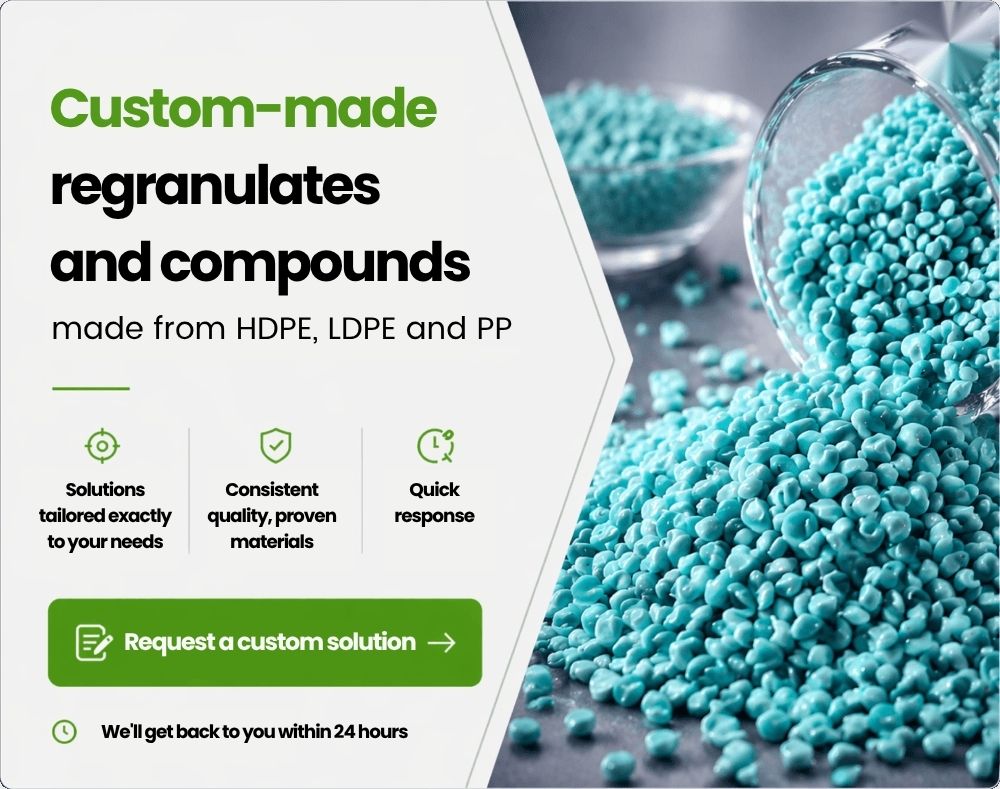 We specialize primarily in injection-molded and extruded regranulates derived from post-industrial and municipal waste. Our polypropylene and polyethylene regranulates are distinguished by their perfect homogeneity and purity, which ensures trouble-free processability.